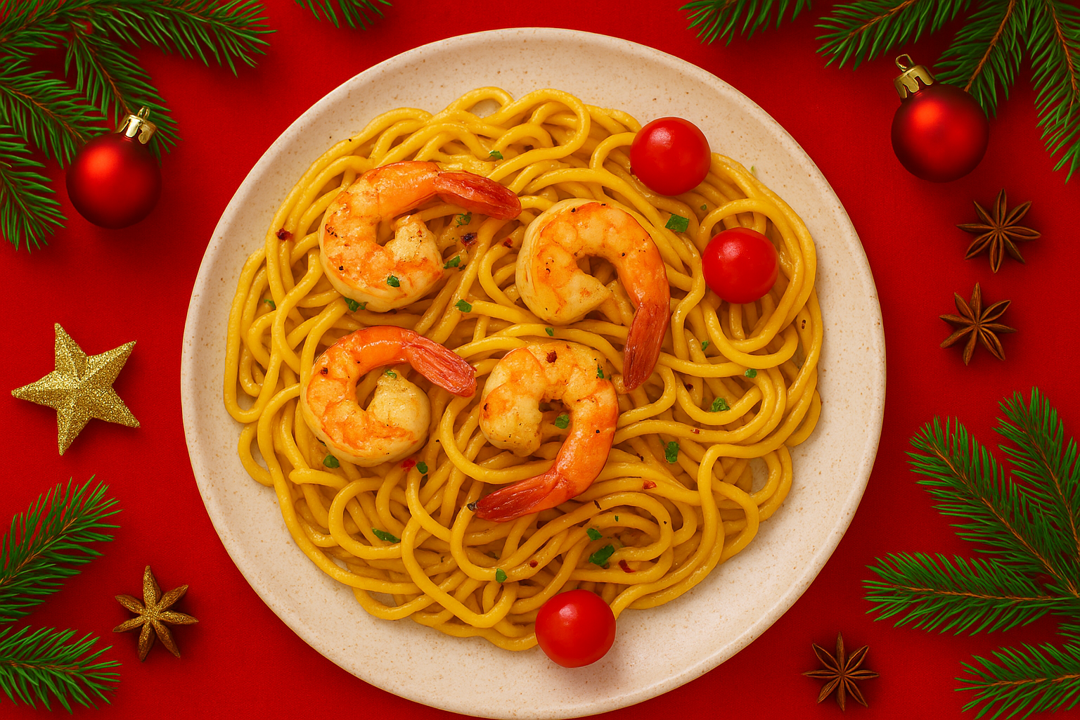Christmas Garlic Butter Prawn Noodles (Perfect for Gathering)