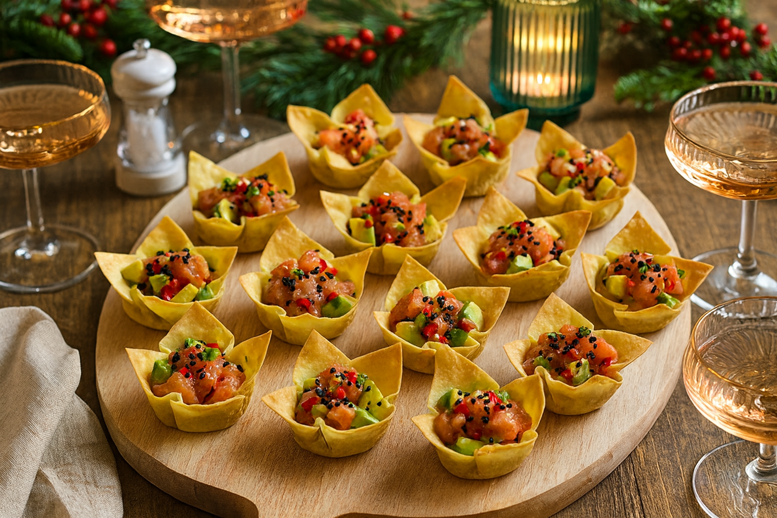 Luxe Salmon & Tuna Wonton Cups — The Ultimate Holiday Canapé