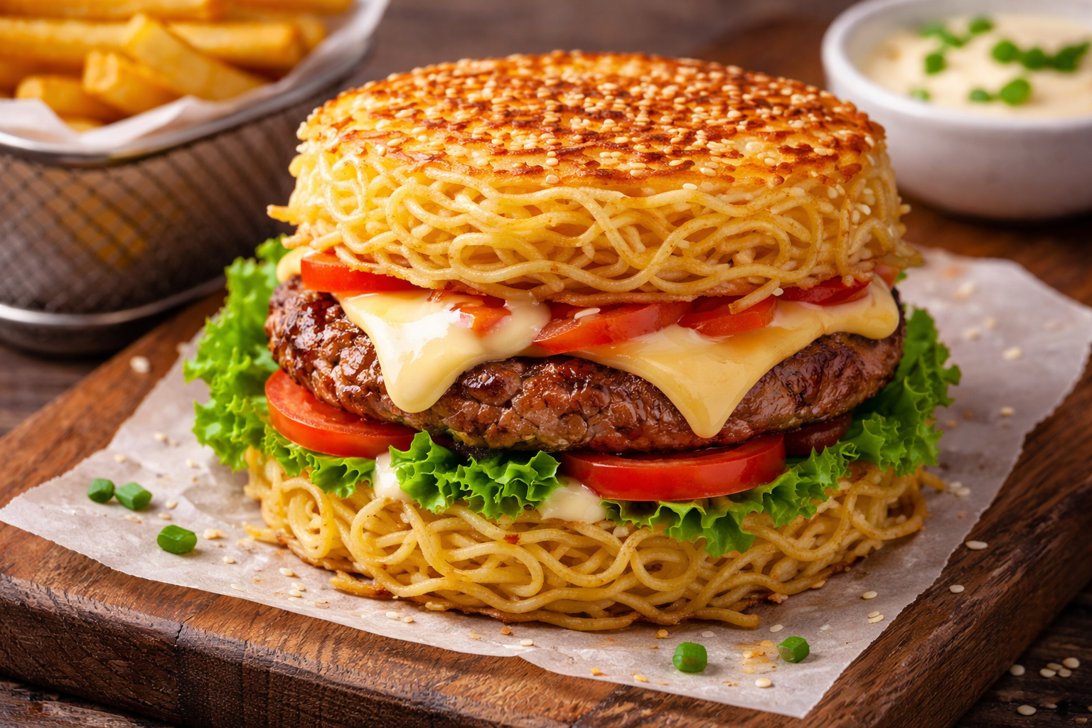 Golden Crispy Noodle Burger