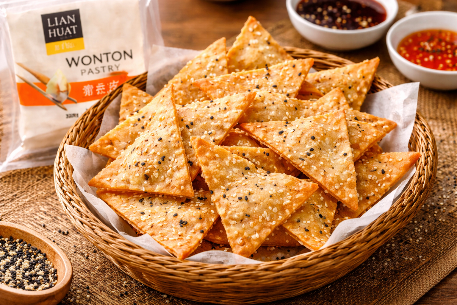 Crispy Sesame Wonton Crackers (Healthy Snack)